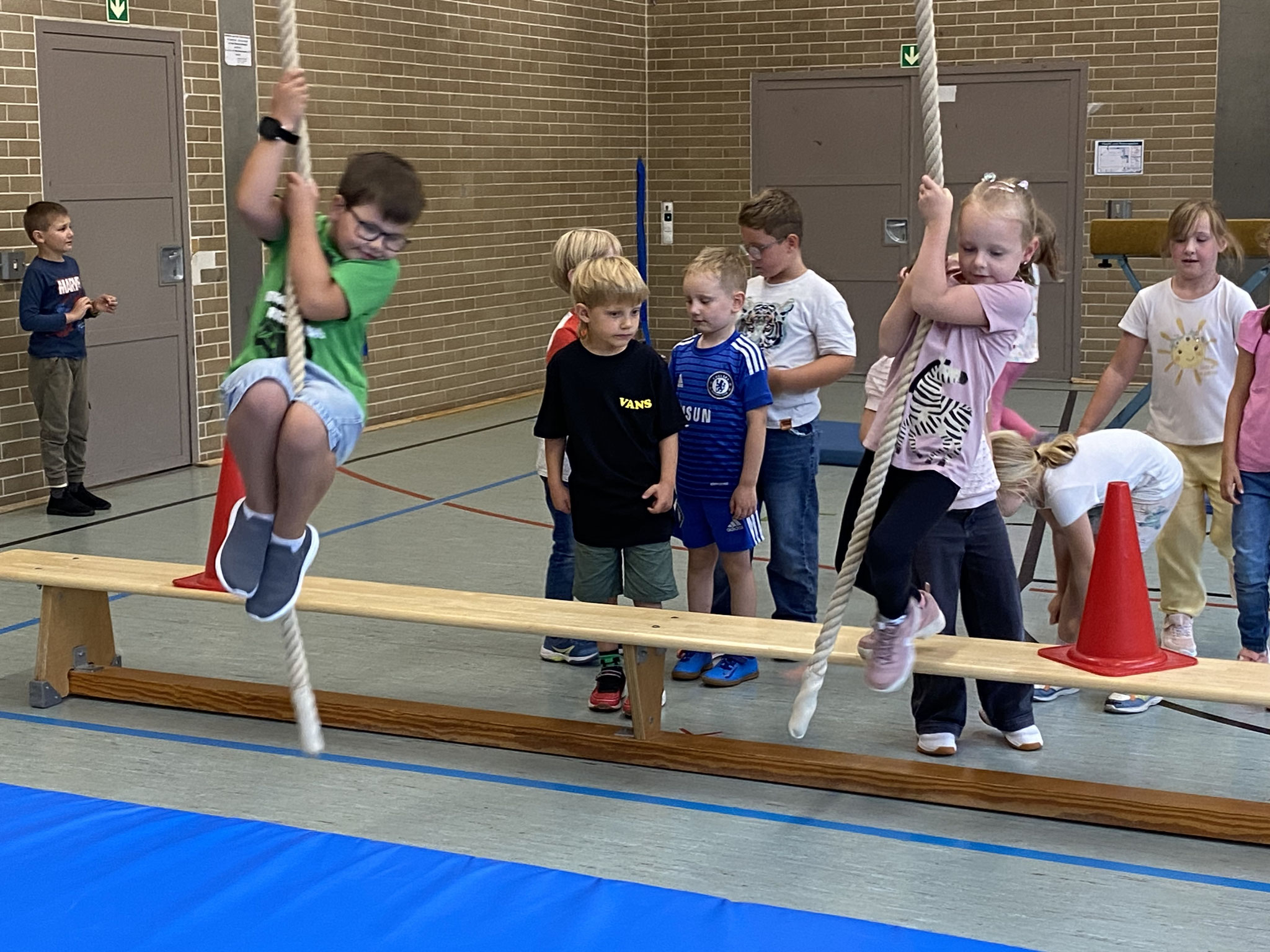 Auch in diesem Schuljahr freuten wir uns wieder darauf, unsere künftigen Erstklässler noch vor Schulbeginn zu uns einzuladen. Gemeinsam mit den jetzigen "Minis", die ab September ihre Klassenkameraden sein werden, besuchten die Vorschulkinder den gefährlichen Dschungel in unserer Turnhalle. An verschiedenen Aufgaben konnten sie ihre Geschicklichkeit und ihren Mut testen und hatten mit unseren Schulkindern tolle Hilfe an der Hand.